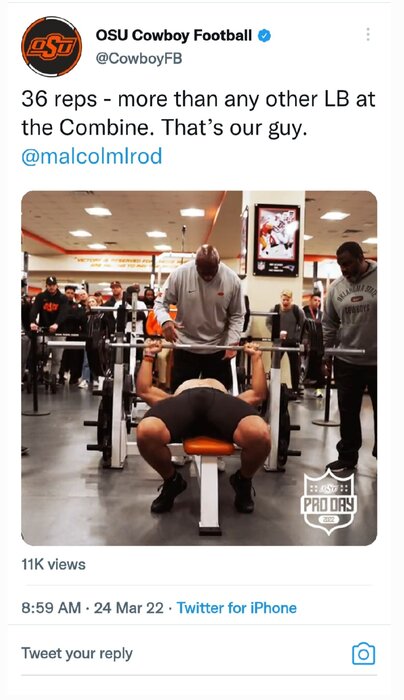 Thanks! I saw that tweet of his bench press a few weeks ago, and stuck him in my draft grab bag. I was gonna go Kolar, Tight End, and then Rodriguez, but @MadGoat snagged Kolar just before my pick.Great Pick. He was my selection at 133