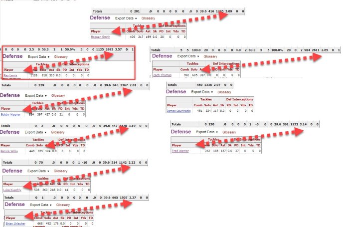 his average depth of tackle on run plays was 2.97 .... not as good as the best ... but better than current All-Pros