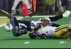 he made the most of his "tackle". nothing in comparison to The Tackle ala Mike Jones.I don't know if he's dumb or just doesn't give a shit really. Either way I agree, I didn't want him back during the season when he was up for trade and I still don't want him. Even on the Whiners where he was surrounded by premium talent on defense he still was mostly invisible over 9 games and playoffs and at one point was rumored to be threatened with being benched due to lack of hustle.