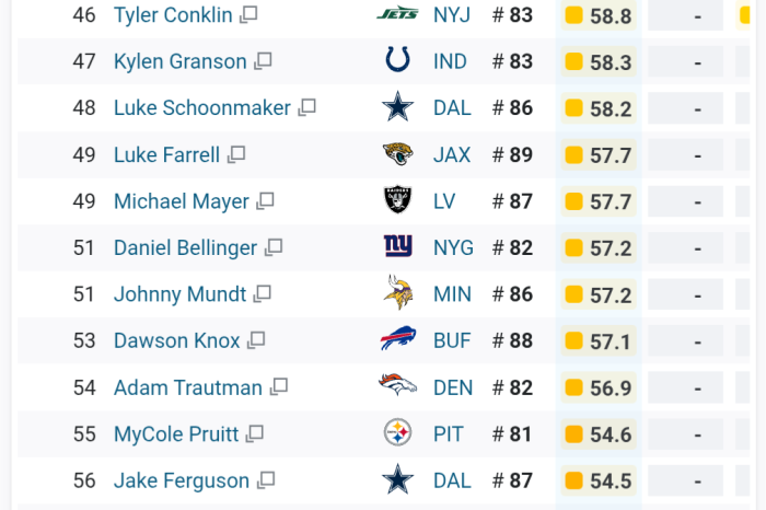 By that measure, Kupp (at 51) would have been the 19th best WR2 last season.Still not worth a straight up trade for Kupp. Middle of the road at 49 is at best the 17th best number 2 tight end.