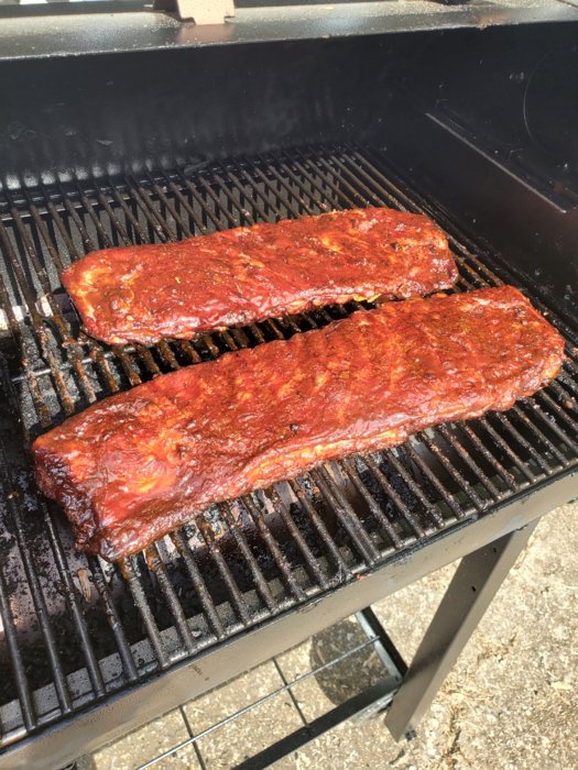 Smoked Ribs for the first time today. Did some research and made a dry rub using Brown Sugar, Granulated Sugar, smoked paprika, garlic powder, dry mustard, black pepper, cumin and salt...I believe.