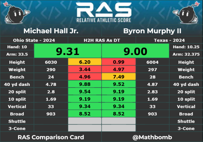 Again FWIW I like Newton over Murphy I understand that Murphy had more sacks & pressures, but Newton did it on a team that had less talent and he did not have T'Vondre Sweat next to him, plus Newton is great with his hands, which is what set Aaron Donald apart from the rest.Seems like if you take Murphy you have to move Kobie to Donald's spot. But, if you take Newton, Kobie stays where he is and shines.
