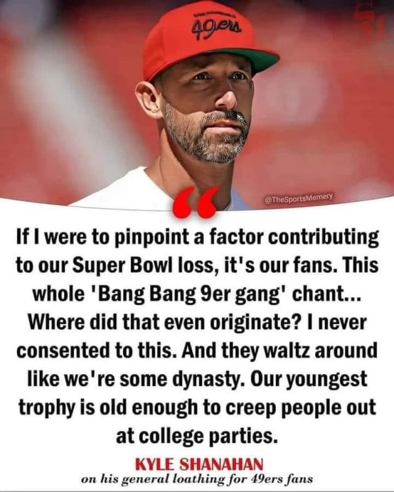 I'm 36 years old. I barely remember 94. All I've known since is losing in the NFCCG and now 3 SBs. This team has done nothing but disappoint me. Mooch era…Harbaugh era… now Shanahan era. Nothing but losing. What's the point? It messes with my mental health and makes me unproductive at work and I neglect other areas of my life during football season.