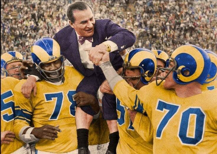Gonna have to rename you Gilman2McVay, ya grizzled old bastid!I think that is Gene "Big Daddy" Lipscombe (#78) carrying Sid Gillman on his shoulder.