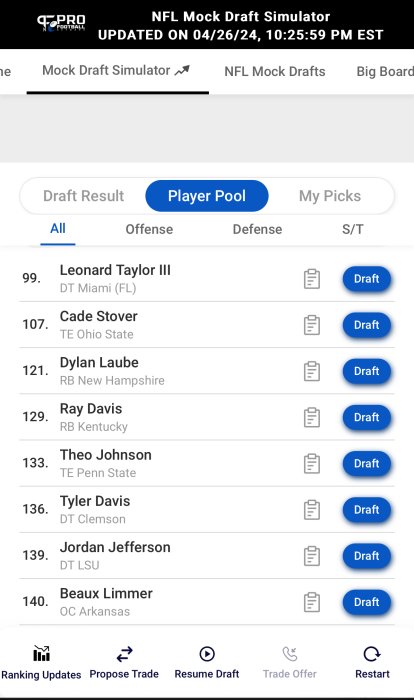 I like a lot of these players but see my post. It’s a mystery as to who will be available as many of these players are higher on boards. Figuring out how the draft stacks is difficult in this class which is deep and talented across multiple positions of need