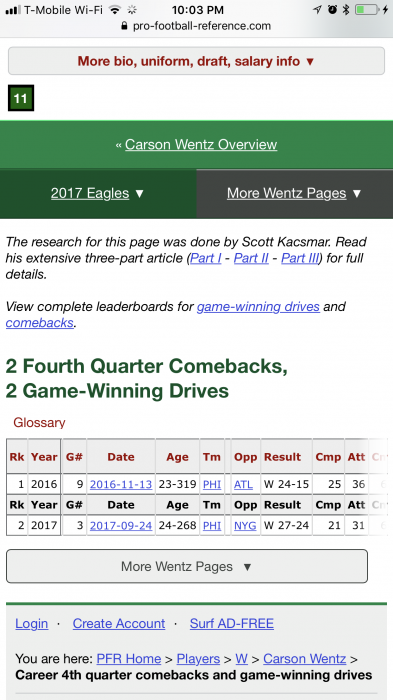 2) Being tthat (as I’ve already stated) Wentz’ College career was basically his senior season, which he was injured for about 65% of it, we only have 3 seasons of football to gauge him by