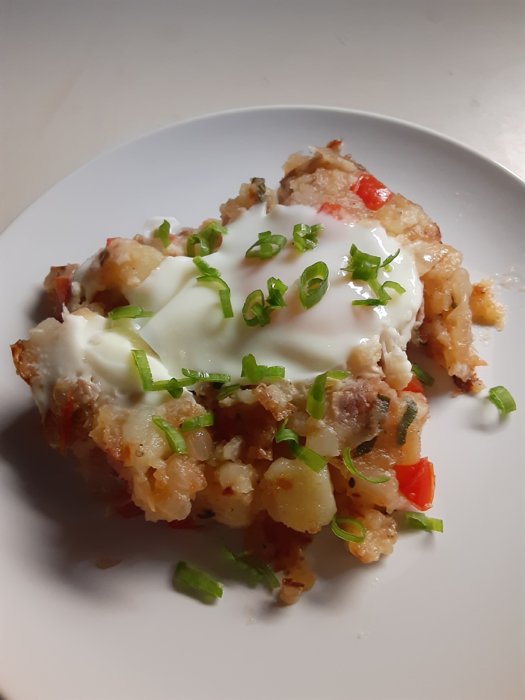Thanks. I baked the egg in with the hash. Didn't have any chives but scallions work. Potato and egg breakfast tacos are good too.That’s nice! I’m looking at the potato/egg there... that’s even finished nice.