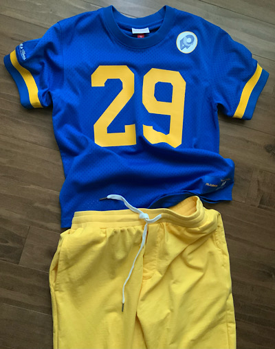 Dressed to impress!The yellow jogging pants I ordered for this game arrived... seen here paired with my Dickerson jersey.