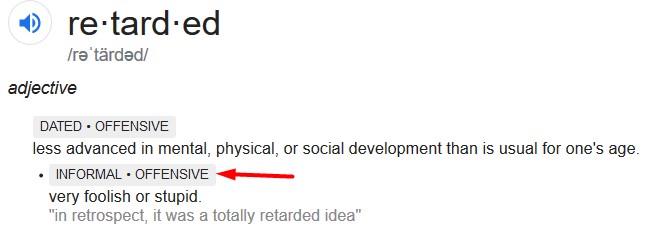 I get it, words that we used as kids back in the 80’s are now verboten. Sorry, some of us old timers (30’s and 40’s) may slip up from time to time and let fly the dreaded word! Retarded