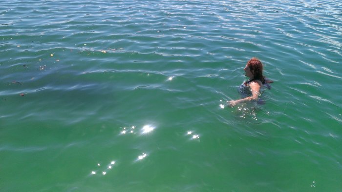 Remember this George? This is Becky swimming with one next to your boat. Hard to make out the Manatee but it was right there next to her. View attachment 5918