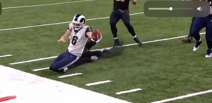 During the game, I was livid because I thought it was pretty obvious that Hekker made it. But after re-watching it in slo-mo a few times, it was closer than I thought.