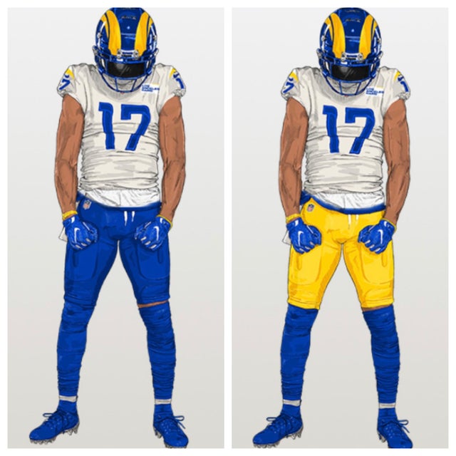 or bone jerseys with yellow pantsalso think the bone jersey with blue pants could look pretty sharp