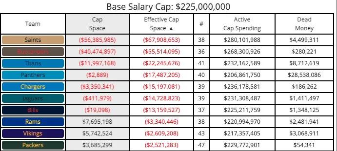 dramatically different. Even the Saints at $67.9 million over and the Bucs at $55.5 million over, will get under the cap. What can the Rams do and what should the Rams avoid?