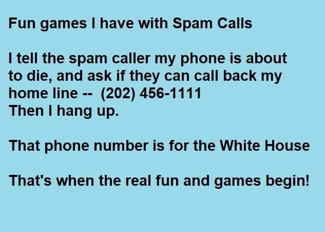 I used to just tell them to hang on and I'll get Stu. Then I'd put them on speaker phone and occasionally holler out "hey Stu - it's for you" then tell them I'd be right there. The goal was to keep them on the line as long as possible so that they couldn't molest the ears of others and also listen to their conversations. There were some pretty funny conversations going on over the speaker phone.