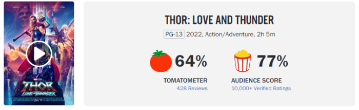 Also, for a Marvel movie, its percentages of favorable reviews were relatively low.