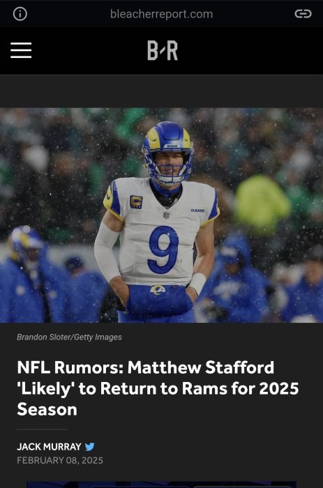 Yeah when you are using the word “likely” - it’s eye opening. Week ir two ago, I’d have thought “absolutely” return. Unless he was thinking retirement. But this is all from the Rams side; not him. He already said he’s definitely playing in 2025. Very interesting indeed