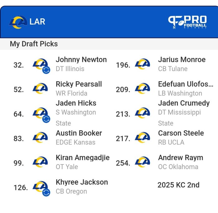 If we have to trade this and next years 3rd round comps to move up a few spots for Latu, then make it happen. DO NOT let him leave LA. Reminds me of TJ Watt, total game wrecker and lives in the opposing backfield.