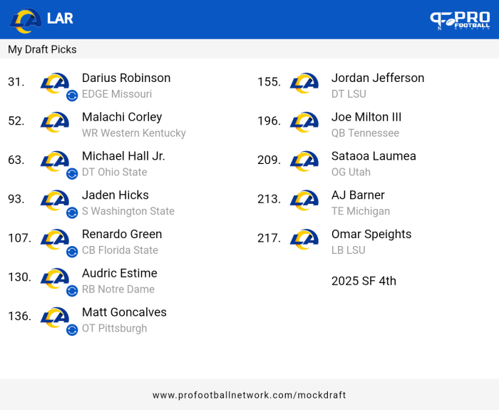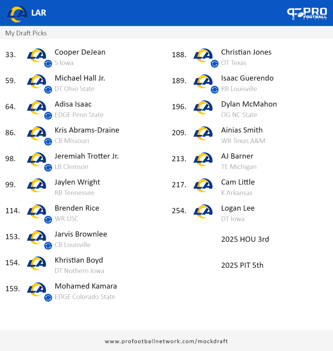 This year Kiper has the Rams trading up in round two for QB Michael Penix Jr. in his last mock draft for this draft class.