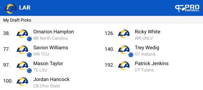 Never say never but I don’t think there’s any way McVay uses his 1st pick on an RB.38 is 2nd rd. and Omarion would be to this offense similar to how Gurley was.