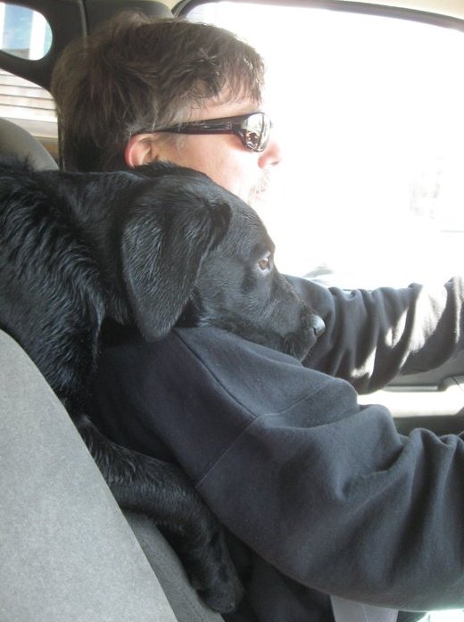 Funny. Sam for some reason likes to lay his head on hard objects - generally wood but sometimes metal. He sleeps on the bed with us but instead of laying his head on the nice Temperpedic matress, he lays it on the rough sawn oak footboard of our bed. It even looks like a completely uncomfortable angle. I'll have to get a picture of it sometime. It makes no sense.Can't go wrong with a Lab mix, particularly Lab/pit - extremely sweet and loyal dogs.