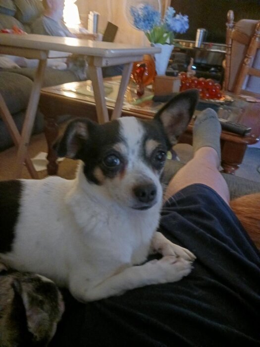 That bothered me. This dog was so friendly. I brought him home to figure out how I'm gonna get him back home. He jumps on the couch and climbs on my lap. Rolls over and lets me rub his belly. He was a very loving, friendly little guy. But when I got him back to his home he changed. He was afraid. His tail tucked between his legs when the guy yelled at him. I drove off wondering if I was doing the right thing. Now I'm gonna be thinking about that little guy.