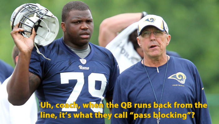 I think what people don't understand is that he's already a decent pass blocker at this point. His problem comes with the line communications and blitz pickups, which is why the coaching staff would rather go with the veterans right now.