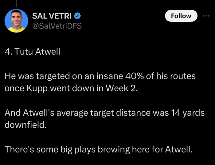 Maybe Mcvay will try to play to his strengths and try to use him he really has no choice … if he’s this guru he should be able to scheme up some plays to get tutu ball in space to use speed