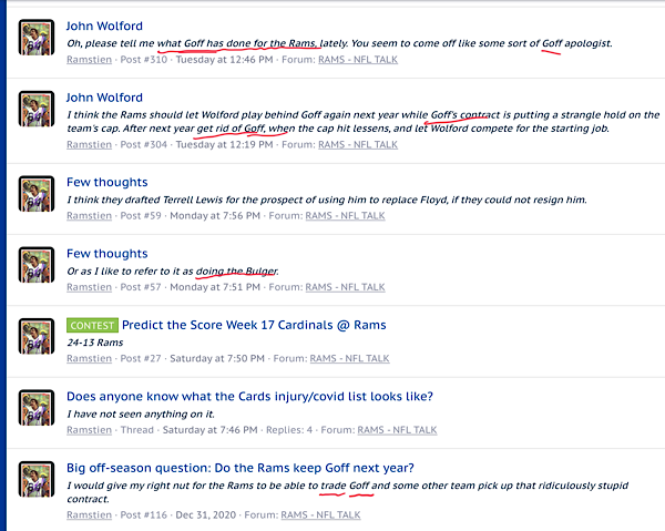 I always give Goff the cred he deserves. I love the kid and root hard for him. But I am a fan of the Rams and winning games first.I've said many times Jared has a ton of warts on him this year you know you've seen me say that. But as I've also said even with his warts we don't know if Wolford's best is any better than Jared's warts.