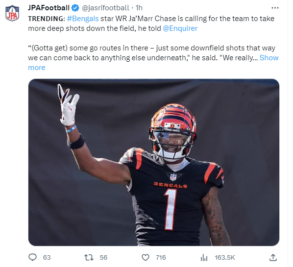 Unless your a Bengal or LSU fan how can you like Burrow or Chase.He’s just hopeful the Bengals will not have offensive face mask penalties called on them.