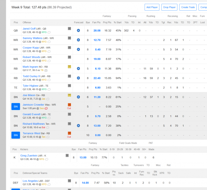 My league has double TD's over 40 yards and a bonus 5 at 300 yards. Sitting at 44 points right now which makes up for AJ Green and a couple others stinking.