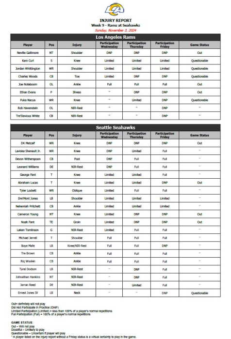 Practice report has Noteboom as full participant last 2 days. He should be active Sunday I assume.