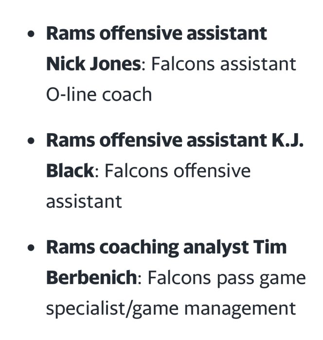 This is absurd. I can't remember a year so bad.Not counting this Tim Berbenich guy, that's seven subtractions from the Rams 2023 Coaching Staff (Morris, Henderson, Robinson, Lake, Springer, Black and Jones) with just one confirmed addition (Giff Smith).