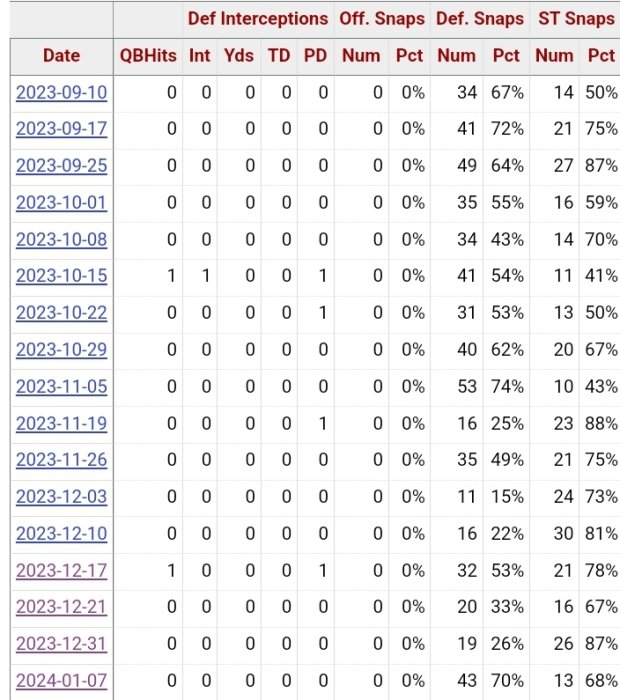 Lake and others at nickel/dimebacker were always taking more snaps than second LB. Second LB is a part time player and not even a ton.I am curious, did Lake take away snaps from the second LB as we blossomed into a play off team?