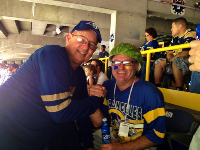 At one point Stephen was sitting in his seat it was Hot and he had a hard time seeing over the standing crowd. Right then JJ picked Rivers, I turned and grabbed Stephen and quickly lifted him above the crowd as he watched the last 70 yds of JJ's pick 6 and there the circle had been completed I did with Stephen what my father did with me and his with him, make great Rams memories.