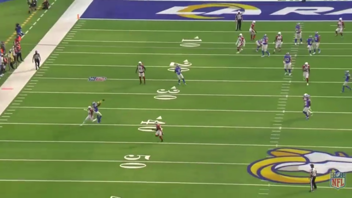 With that being said, we can use someone that can make that play more often, like a Hopkins or Adams. That can be addressed next year, but of the receivers we have on our team, IMO the person we should be targeting deep is Woods. Defenders will fall for his double moves since he's good at short and intermediate routes, and he has more breakaway speed than Kupp. He's shown the ability to adjust in the air, like on that sideline catch, and he drew that holding call when he blew past Peterson.
