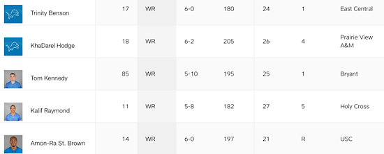 There is our old buddy KhaDarel Hodge. St. Brown had a nice camp, but I think he originally didn’t make the active roster.
