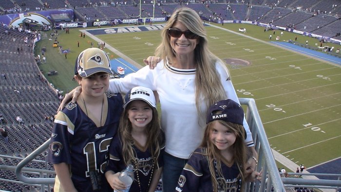 I started them young. This was my family at the 2006 Rams at San Diego. The girl in the white hat, that was her Halloween costume at a party the night before, so she wore it to the game...lol!