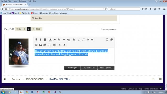 This is the font/\ color button (the one up above the "/\" with the line underneath) , just hi-light what is typed by holding down the left click and dragging over it like this...see pic....View attachment 6232