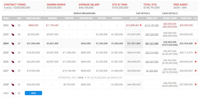 They are pretty much stuck with him for 2024 with an $81million dead cap if they dump him. If they wanted to purge him they could and just deal with splitting the cap hit between a couple years but would be easier if they waited and did that for 2025 where his dead cap drops to $33 million. If I were them and a QB I liked was there at #4 I'd take him and make them compete for starting role. If Murray pouts, like we know he will because he's a man-child, they'll move on the next season.