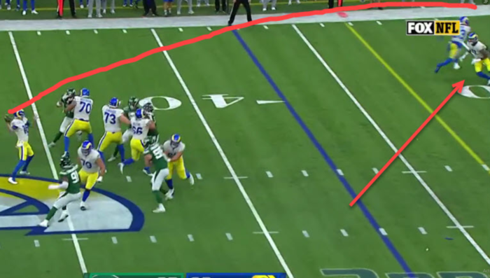 You're embarrassing yourself now, the ball is almost out of Goff hand. Either way, you want to take a shot on 3rd down, you had better make sure you are picking up the 4th, not dialing it up for a matchup of Everett who's less reliable than Jared CookWhat do you honestly think happens if he puts that ball on Reynold's body Deiter?