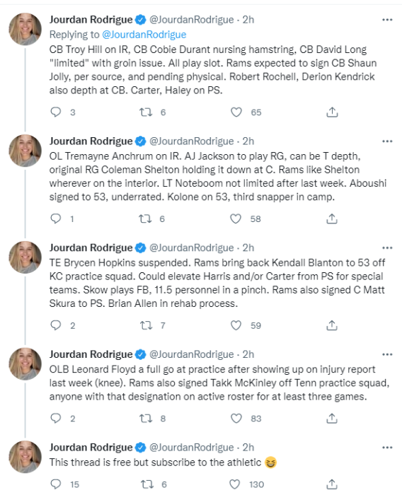 Bringing back Malcolm Brown and signing Aboushi is a band-aid that might help, but, (as I keep saying over and over, hoping McVay will hear me) every offense needs a snot knocking full back that lives to hit a linebacker at the second level at some point in a game.