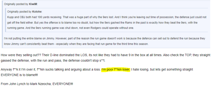 Hear hear....that guy is delusional. Refs absolutely made a big difference in the game. If anything, it's childish to deny the obvious facts. With 2 great teams, the outcome if often 1 or 2 plays OR 1 or 2 bad/missed calls. To those people in denial, facts don't care about your feelings. The niners should of made more plays but so should the Rams.