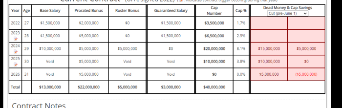 He's owed 15 mill for '24 if he remains with the team, with additional 5 mill of dead cap & 2 void years in '25 & '26 that carry 10 mill of additional dead capI wrote that I would do an extension.