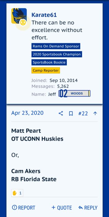 Against D fronts like the Niners that's a loser, because the Rams don't have the OL built to consistently give Stafford 5 seconds to take his time and wait for the slow-developing plays. On most of Stafford's sacks, he's had time to make a quick throw or simply throw it away. McVay's scheme is to read deep to short. In this game, McVay needs to shorten up his passing game to nullify the Niner's pass rush. When the safeties creep up, and they will, then the deep shots will be there.