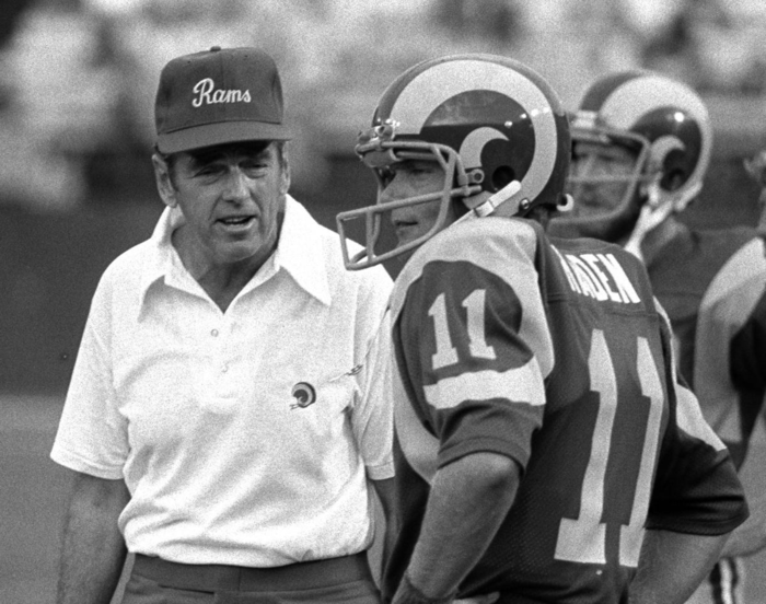 And BTW @Loyal you know who could not stand Allen it was Pat Haden, Allen asked Haden to pick up a hot dog wrapper that was blowing on the practice field and Haden thought he was nuts. Haden had an excellent rapport with Ray Malavasi who was the only Knox assistant who was kept, however, Ray was now the Offensive Coordinator (odd) and after an 0-2 start to preseason losing 14-0 to the Chargers & 14-7 to the Patriots Rosenbloom had seen enough, admitted his mistake and replaced Allen with Malavasi. So instead of Bill Walsh Los Angeles Rams had windbreaker Ray, to what could have been.