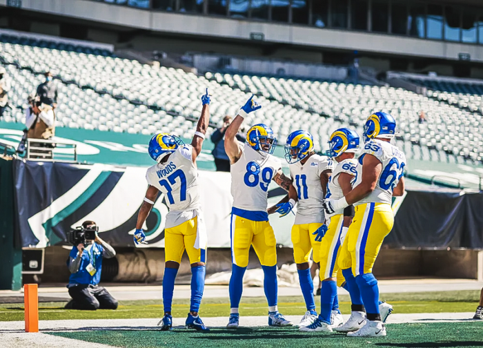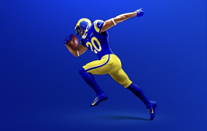 The Rams unis POP, even when they play in the bone unis. The off-white is perfect in that it creates the contrast between it and the green field, but it's not so stark that it's off-putting.